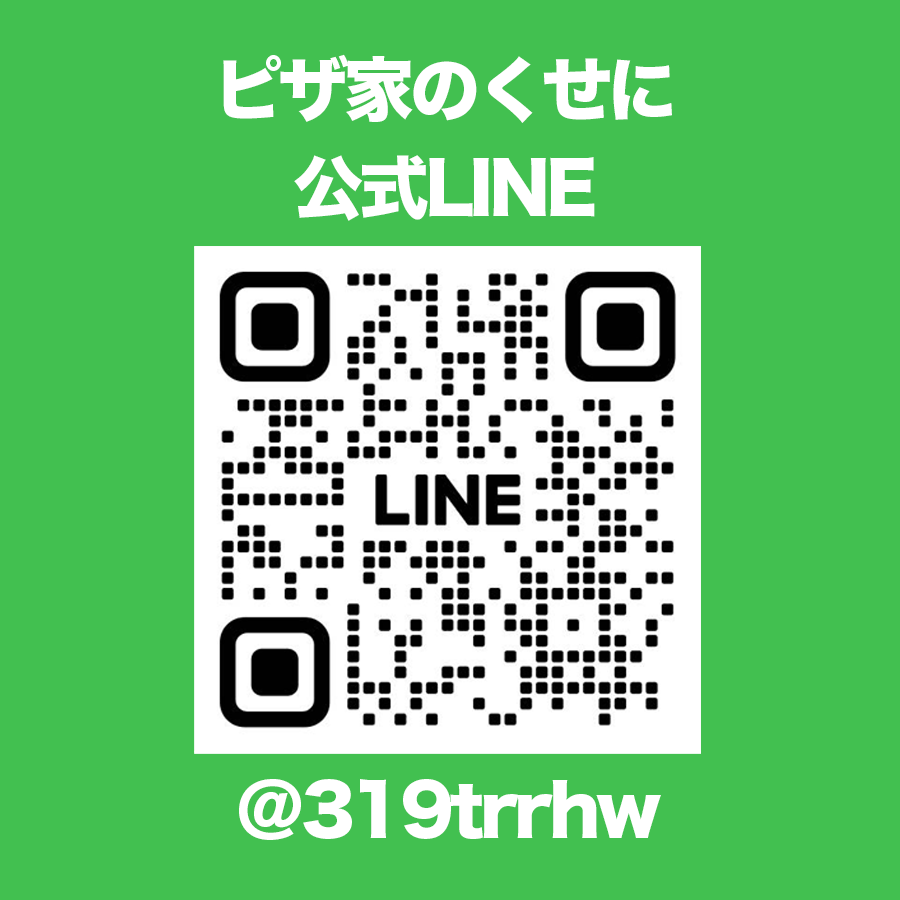 来店して注文 ご来店いただきMENUをお選びください! 電話で注文 デリバリー・テイクアウトのご希望、配達希望時間がございましたらお申し付けください! 混雑している場合はご希望の配達時間にお届けできない場合がございます。 すぐに配達希望のお客様には、配達時間の目安をお伝えいたします。 電話で注文する LINEで注文 ピザ家のくせにの公式LINEをご登録いただき、ご希望のMENUをメッセージで送信してください! 配達時間の目安をお伝えいたします。